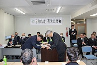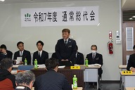 3月19日、栗山土地改良区にて総代24名及び役員、事務局など出席のもと令和7年度通常総代会が行われました。 当日は、新しく総代議長に選出されました塚本政紀氏の進行のもと、令和7年度一般会計収支補正や令和8年度事業計画・予算などについて慎重審議し、提出議案どおり全て可決されました。 また、任期満了に伴い退任されました桂 一照前理事長、高尾孝幸前理事長代理、中島豊浩前総括監事、前理事の青木 悟氏・大坪竜樹氏・瀧澤茂和氏に対し、中川理事長より感謝状が贈られました。